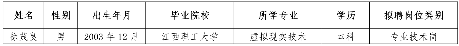 根據公開招聘工作有關要求,經過報名、資格審核、面試、體檢等程序,確定徐茂良為南京瑞迪水利信息科技有限公司擬錄用人員,具體如下: