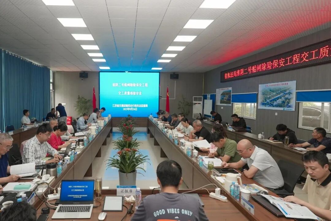 近日,南京水科院勘測設計有限公司和華設設計集團共同設計完成的淮陰二號船閘除險保安工程順利通過交工驗收。2025年9月26日,蘇北航務管理處在淮安航務中心組織召開淮陰二號船閘除險保安工程項目交工驗收會,會議聽取了建設、設計、監理、施工等單位關于該項目情況的匯報,經省交通運輸綜合行政執法監督局現場查驗工程實體與施工資料,評審委員會一致認為,工程質量符合設計及規范要求,內業資料齊全,鑒定為合格,同意通過交工驗收。